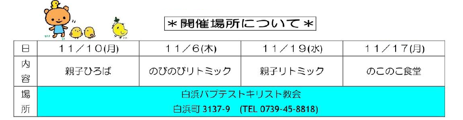 教会での開催時(のこのご食堂)は、はまゆう病院駐車場をご利用ください。