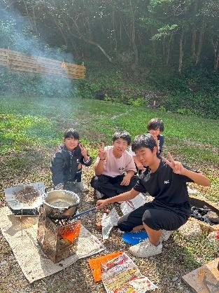 二十三日は防災アドバイザーの幾島さんを招いての防災学習(防災倉庫見学・簡易トイレづくりなど)、二十四日は非常時に備えた野外調理とふるさとの魅力を体験する活動を江津良のキャンプ場で行いました。
