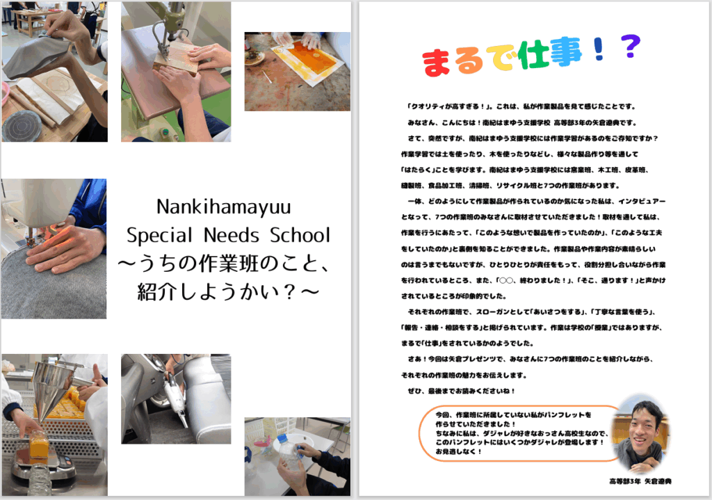 ・南紀はまゆう支援学校作業班の取材、パンフレット制作