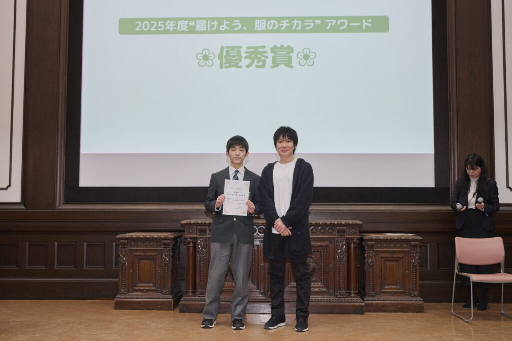 2026年2月12日、東京・国立科学博物館で「“届けよう、服のチカラ”アワード」の表彰式が開催されました。同校高等部2年生の生徒が臨んだプレゼンテーションと質疑応答。